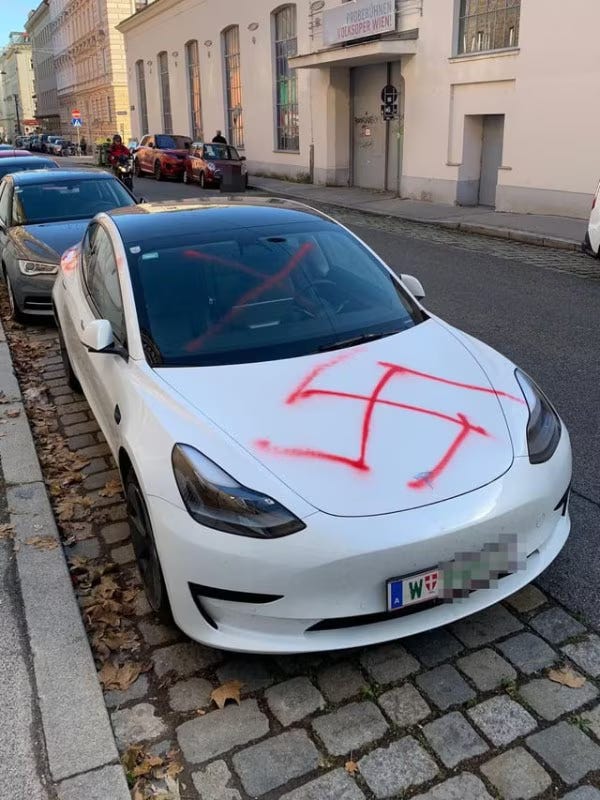 I was thrilled to see a video of protestors defacing a Tesla dealership. I am joyous at the ads for teslas being smashed and Elon Musk being mocked openly in public ads in Europe. I see these as a kind of violence… and I want to see more of it.